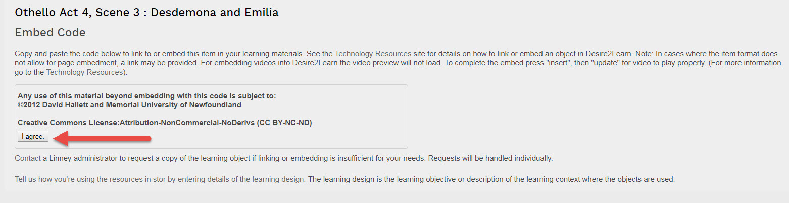 2. Before you are shown the embed/link code you will be reminded of the Digital Rights for the object. Make sure you are following these rights and then you can agree to them to view the code.